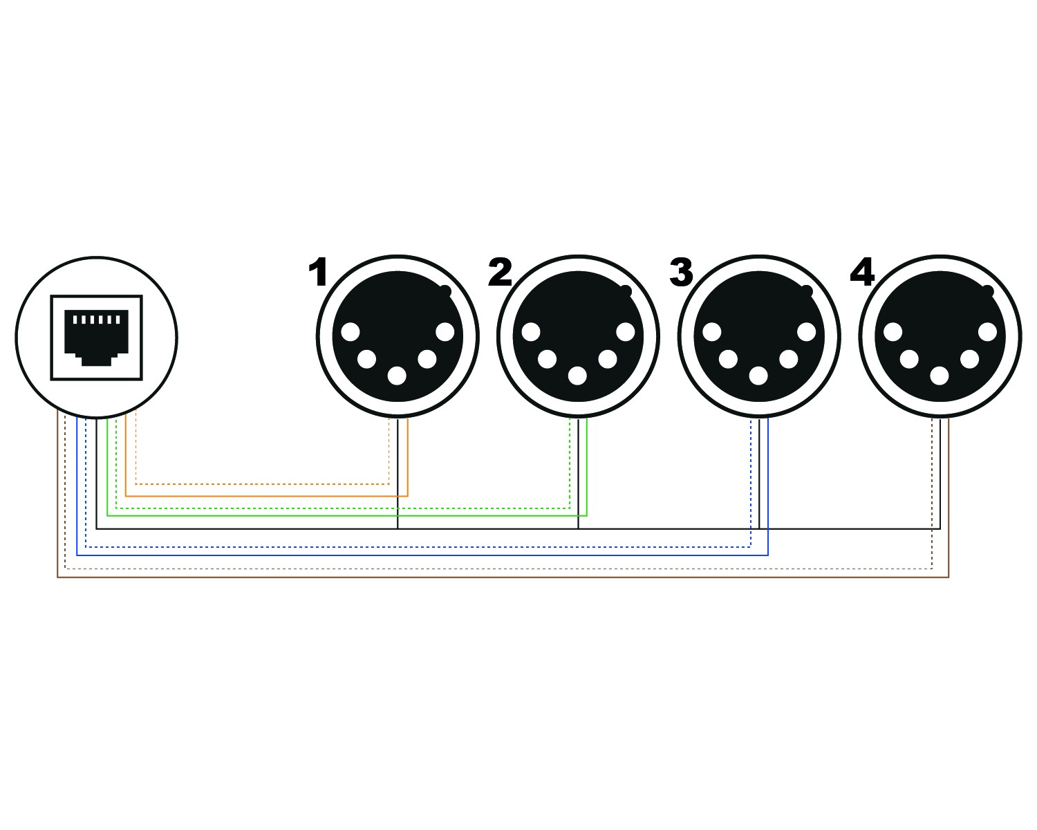- 4 conexiones XLR macho de 5 pines