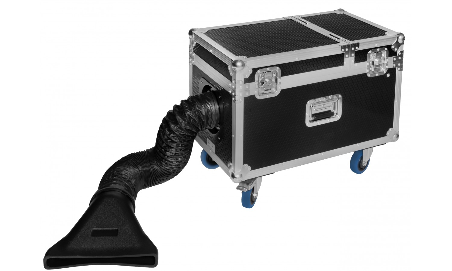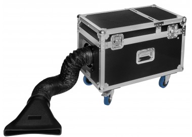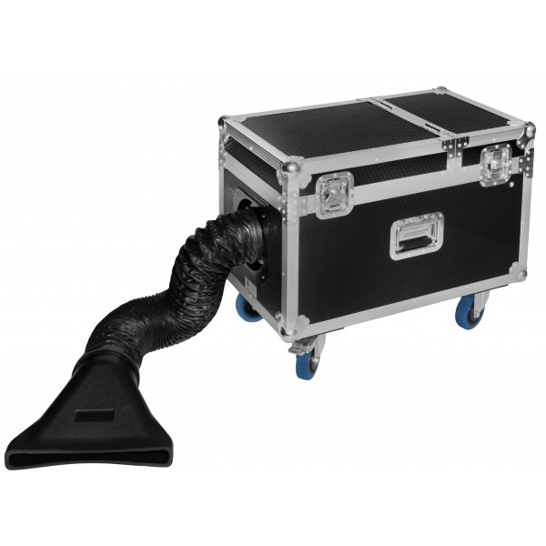 Máquina de humo bajo profesional montada en un práctico y resistente estuche de transporte con 4 ruedas giratorias. Produce un denso humo que se mantiene cerca del suelo, creando un efecto evocador. Adecuada para grandes escenarios y teatros, tiene múltiples aplicaciones.