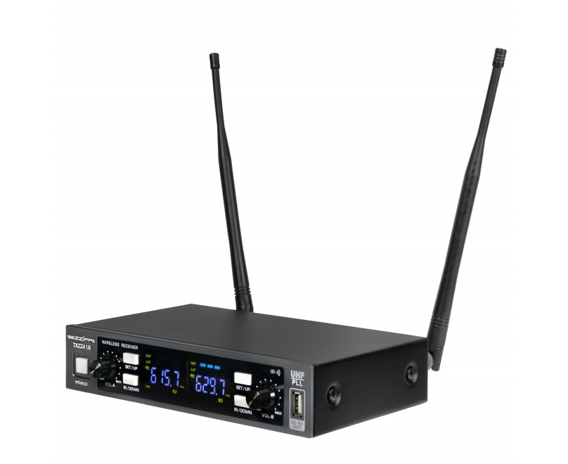 El receptor UHF, equipado con una pantalla LED, se complementa con transmisores con pantalla LCD y función IR para un emparejamiento inmediato. El puerto USB frontal permite la carga directa de las baterías, lo que hace que todo el sistema sea práctico y esté listo para usar. Los transmisores bodypack, equipados con una cápsula dinámica unidireccional y una batería recargable, aseguran un sonido claro y preciso incluso en condiciones difíciles.