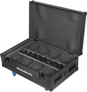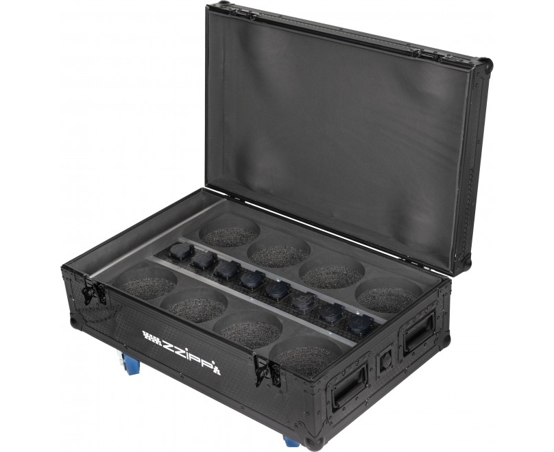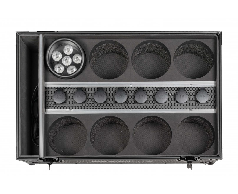 El compartimento interno permite el transporte y la carga de 8 ZZEN615BWP - Par a batería 6x15 rgbwa+uv ip65