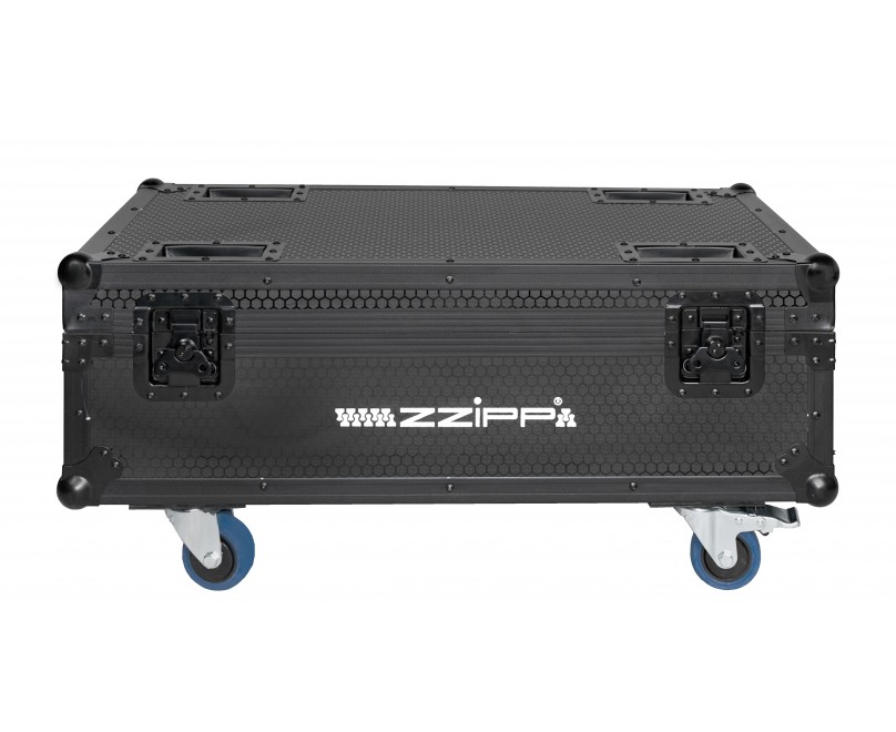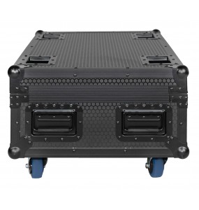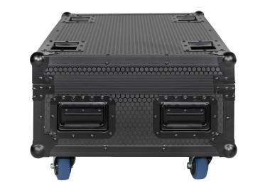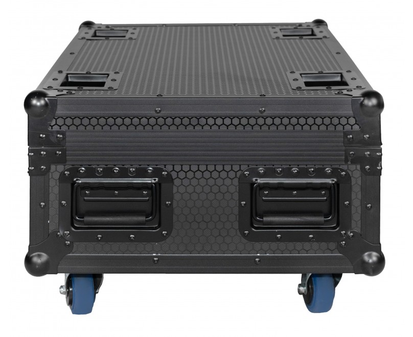 Flight case ultrarresistente de madera contrachapada de abedul, reforzado con perfiles de aluminio para soportar golpes y vibraciones.