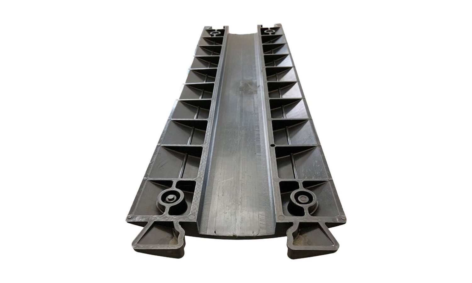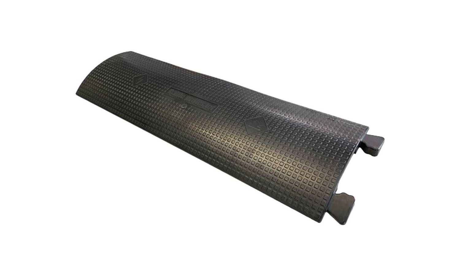 La plataforma de goma con carga permite un paso seguro de cables a prueba de automóviles