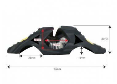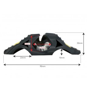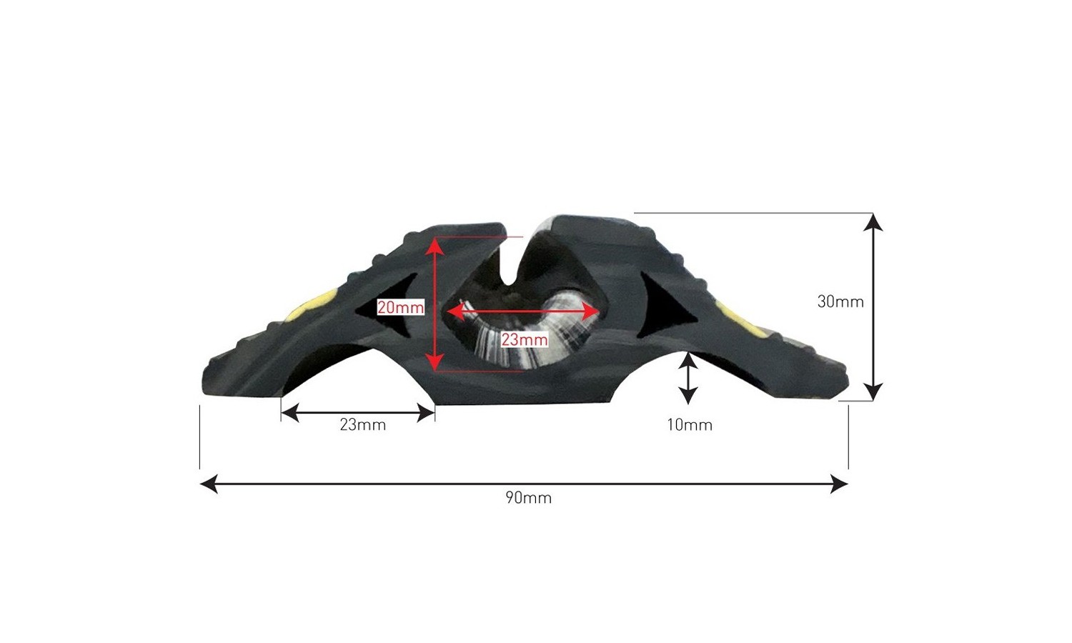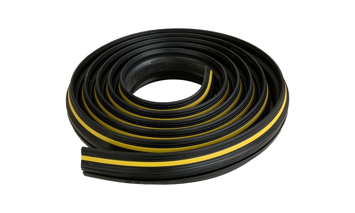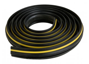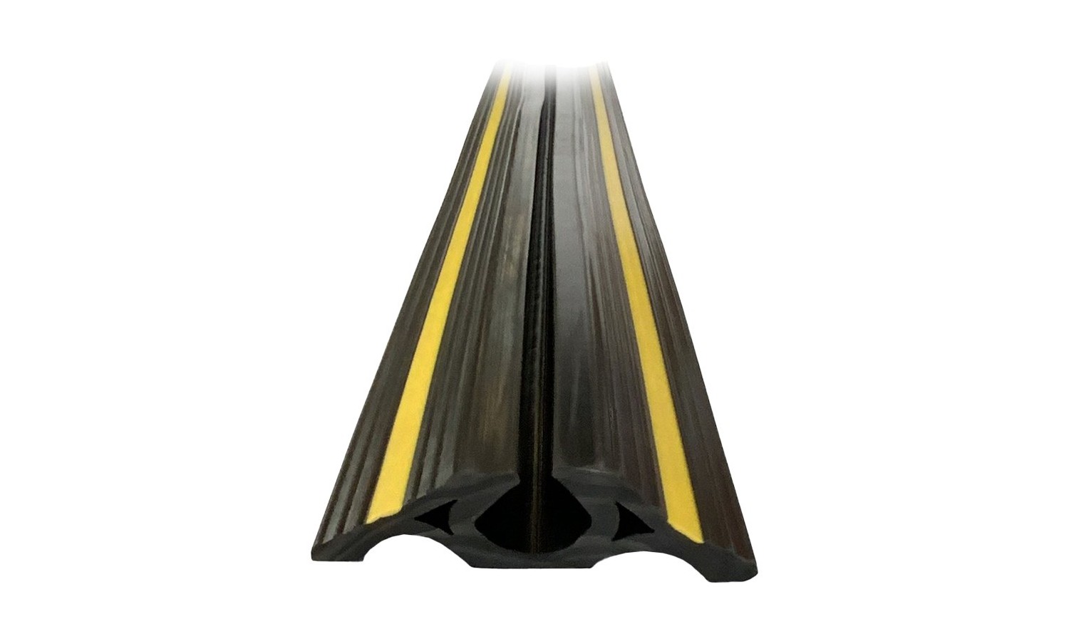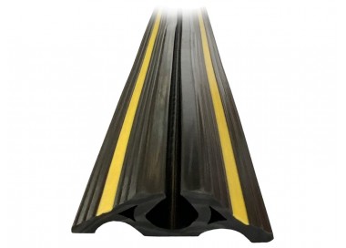Canal amarillo y negro con una capacidad máxima de carga de 2 toneladas, base de goma antideslizante, estructura de PVC ignífugo que se puede acortar a voluntad con un cortador.