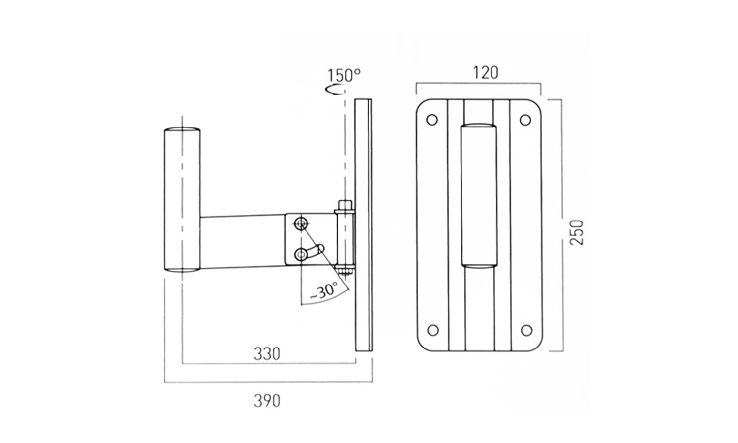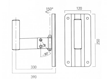 Robusto soporte de acero tubular para altavoces. Con articulación direccional que permite un ajuste completo tanto vertical como horizontal.