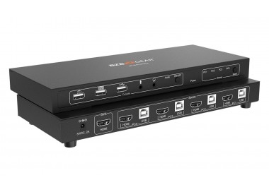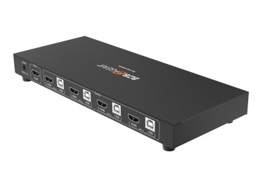 Conmutador kvm 4x1 4k uhd con puerto periférico usb 2.0 y soporte de audio
