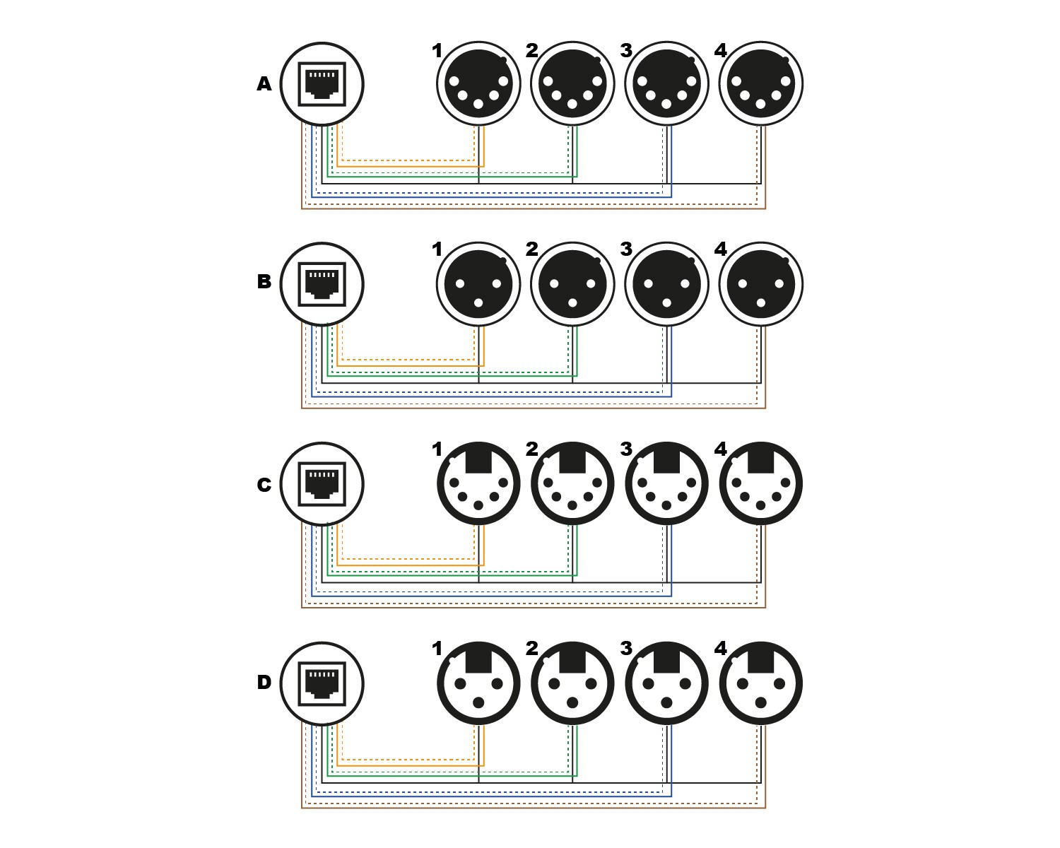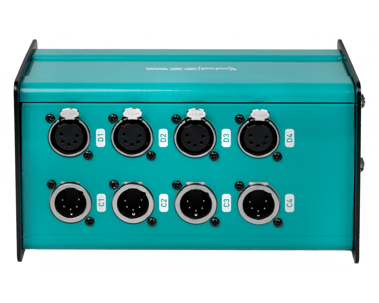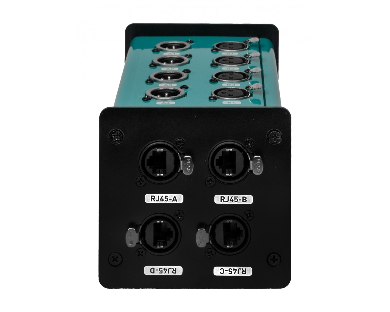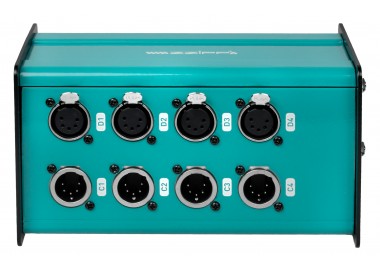 Analog cable box with 16-channel 5/3-pin XLR connectors, designed for reliable DMX/Audio signal distribution. The rugged metal chassis provides excellent electromagnetic shielding and mechanical protection, while the internal wiring ensures signal continuity and long service life. Its compact format allows tidy patching, reduces clutter on stage or in the rack, and is available in multiple configurations to meet specific routing needs.