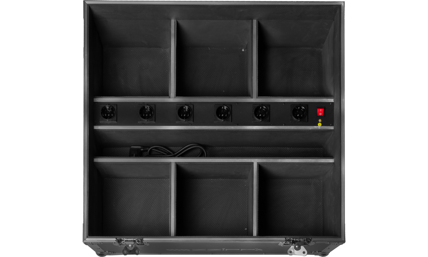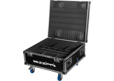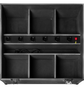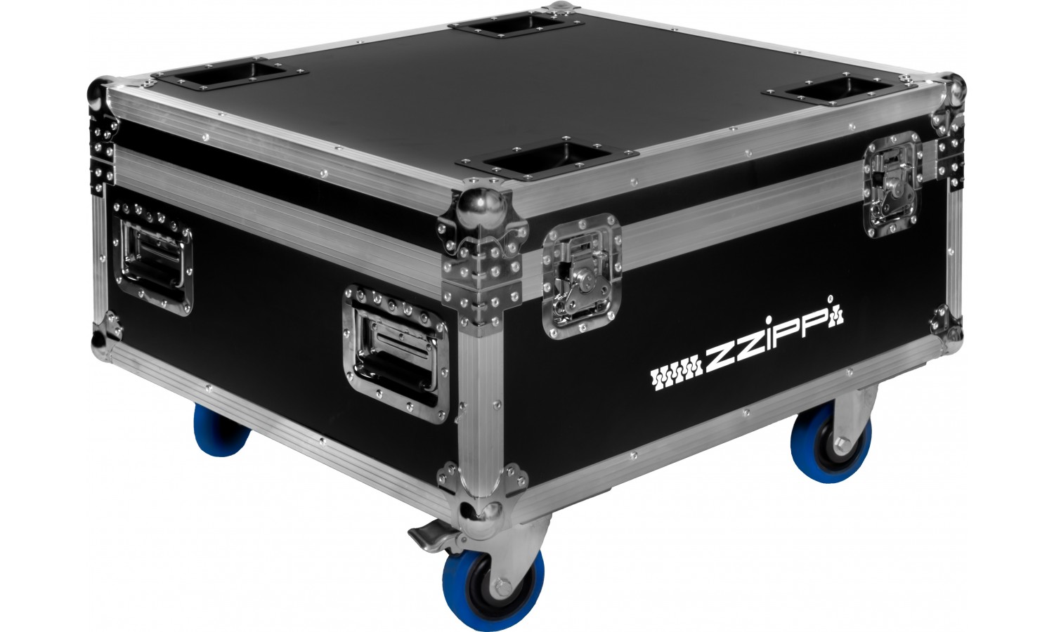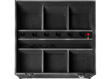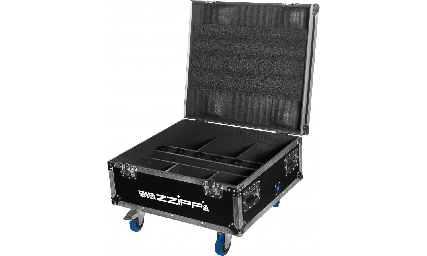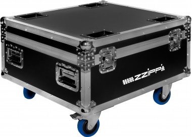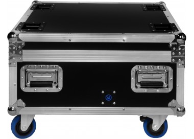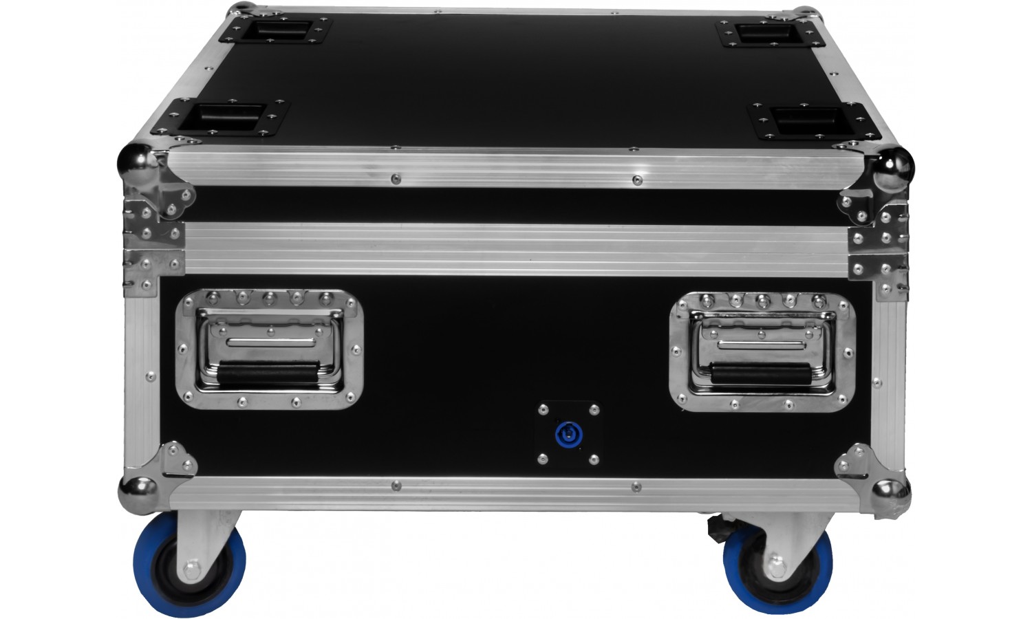 Sturdy flight case mounted on wheels for transportation, storage, and charging of 6 ZZEN0912BWP spotlights.