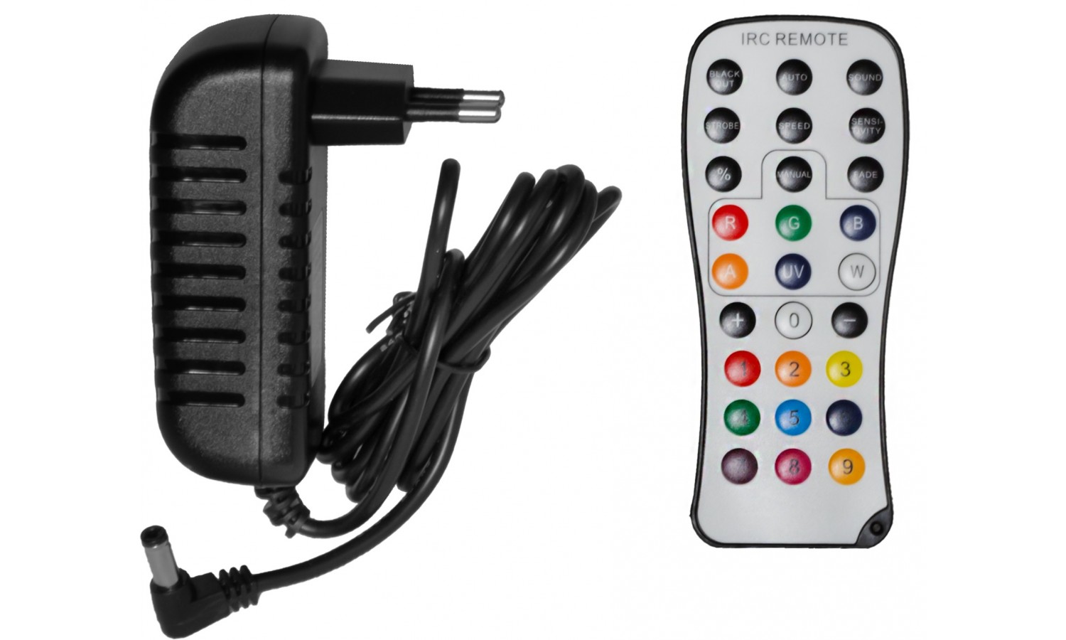 - Control: wireless DMX, IR remote control, LED display with navigation buttons