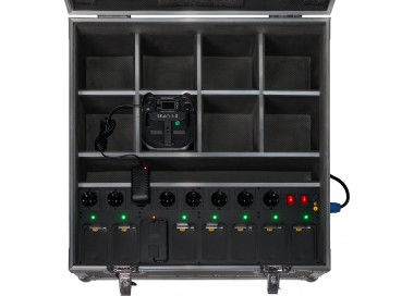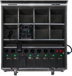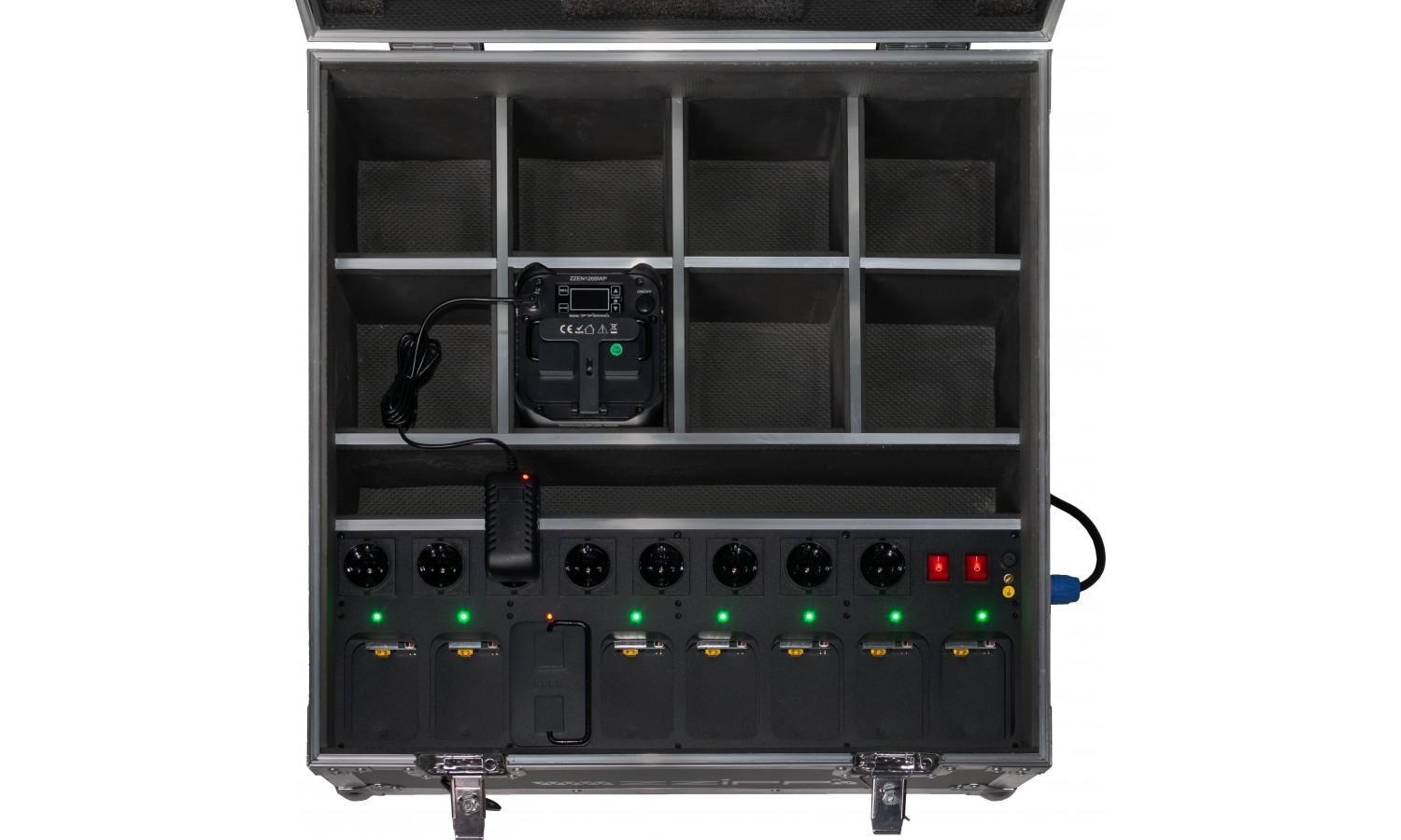 Wewnętrzna komora mieści do 8 sztuk urządzeń ZZEN126BWP oraz umożliwia ładowanie 8 akumulatorów ZZEN126BAT.